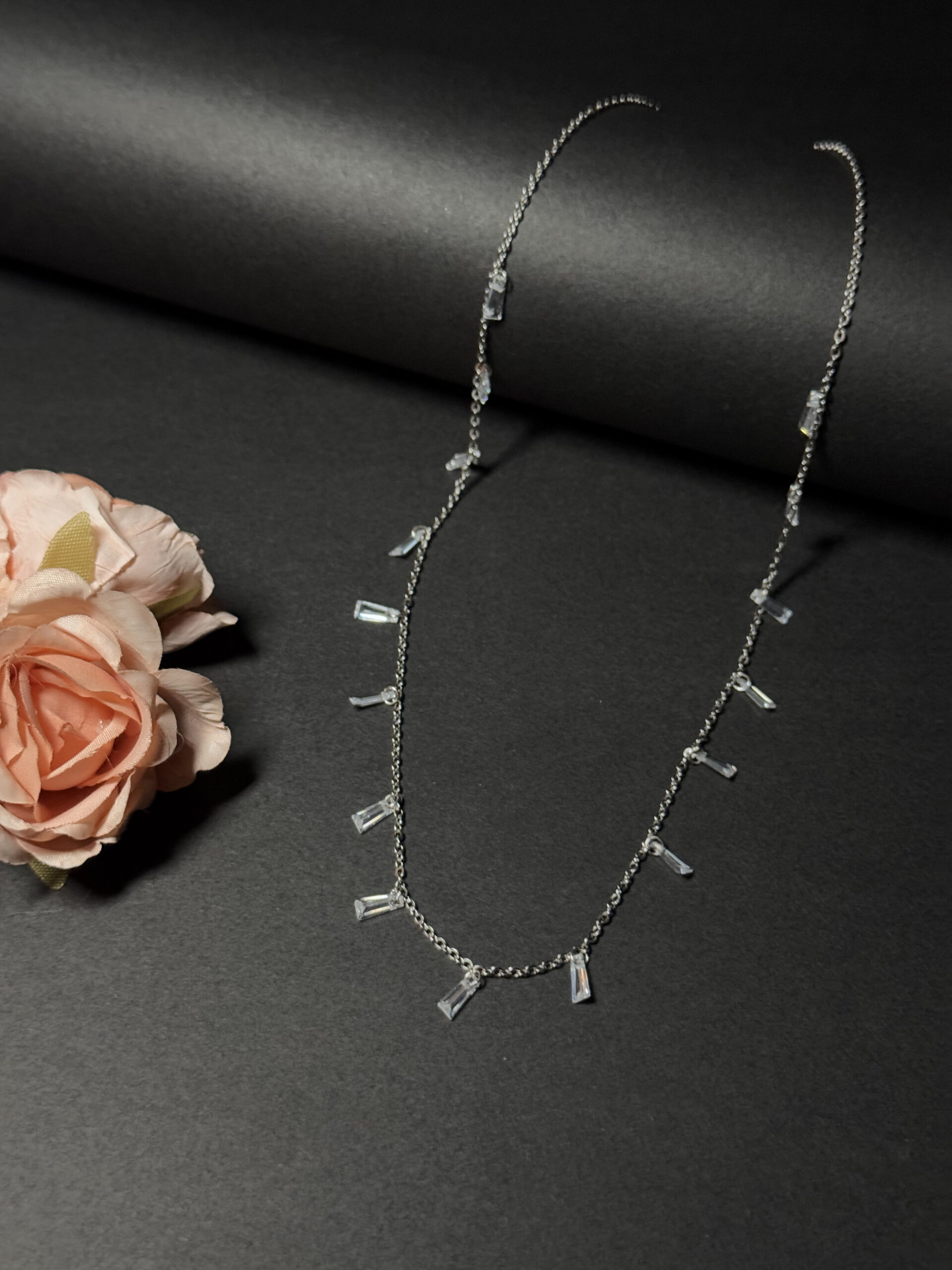 Be the first to review “92.5 Sterling Silver Baguette Zircon Drop Necklace”