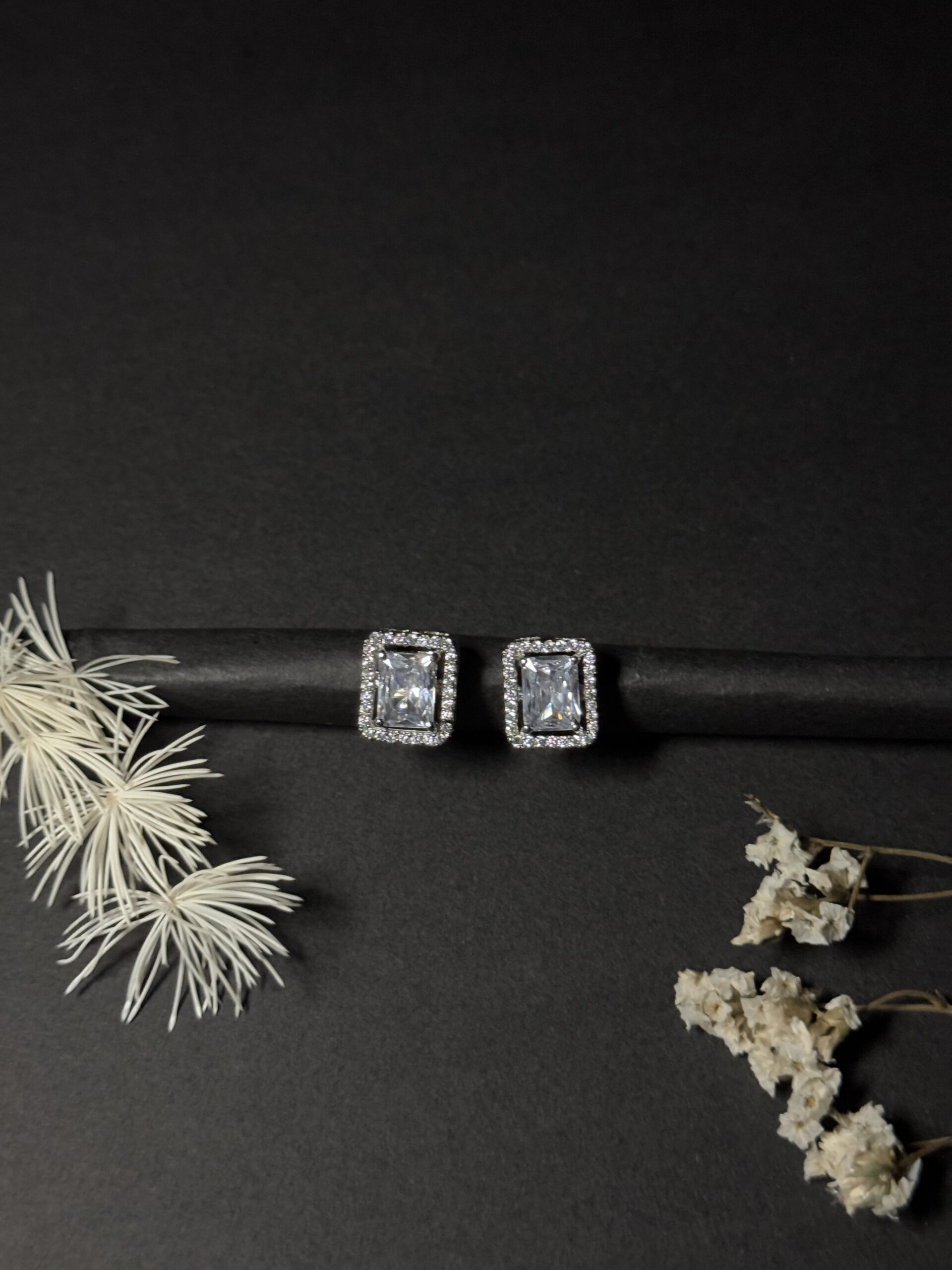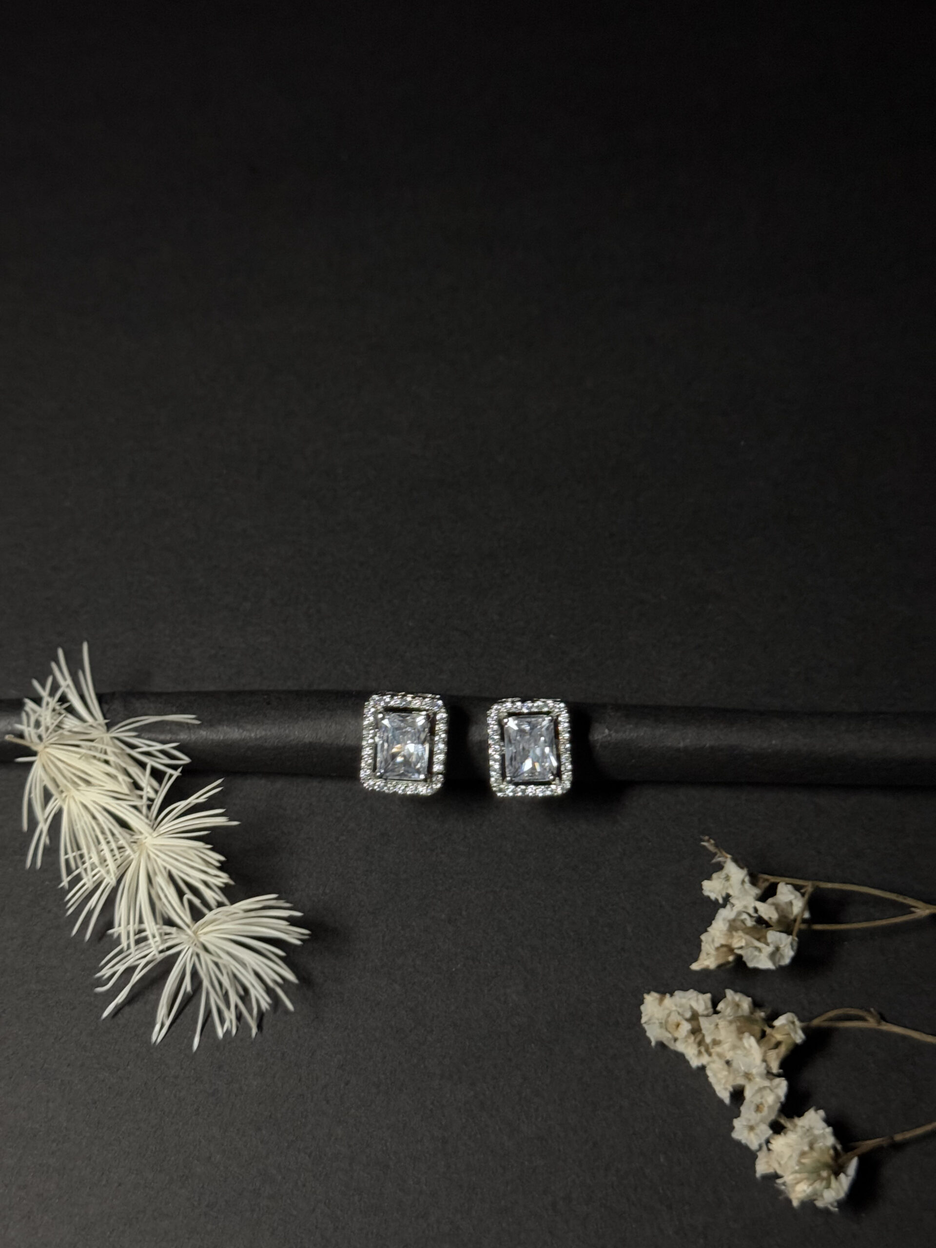 Elegant Emerald-Cut Halo Stud Earrings ✨💎